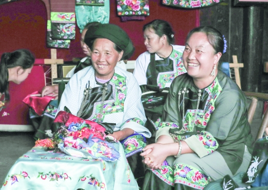 看到姐妹们学有所获,合兴村支书麻妹英(右)开心地笑了。 龙艾青 摄
