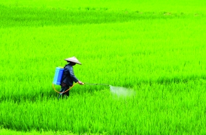 7月13日,花垣县龙潭镇大坪村,农民在稻田里忙着喷洒农药。盛夏多雨时节,稻飞虱等病虫害十分突出,当地农民及时采取有效措施防治,确保农业生产丰收。 龙恩泽 摄