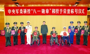 新华社北京7月28日电 时代楷模光耀强军征程,至高荣誉彰显卓越功勋。中央军委颁授“八一勋章”和授予荣誉称号仪式28日在京隆重举行。中共中央总书记、国家主席、中央军委主席习近平向“八一勋章”获得者颁授勋章和证书,向获得荣誉称号的单位颁授奖旗。 八一大楼仪式现场,官兵代表整齐列队,气氛庄重热烈。上午10时,18名礼兵正步入场,持枪伫立两侧,授勋授称仪式开始,全场齐声高唱国歌。中共中央政治局委员、中央军委副主席范长龙宣读了习近平签署的中央军委关于颁授“八一勋章”和授予荣誉称号的命令,中共中央政治局委员、中央军委副主席许其亮主持仪式。 麦贤得、马伟明、李中华、王忠心、景海鹏、程开甲、韦昌进、王刚、冷鹏飞、印春荣等获得“八一勋章”的同志依次上前,习近平为他们佩挂勋章、颁发证书,同他们亲切握手、合影留念。 随后,习近平向获得“学习实践党的创新理论模范连”荣誉称号的陆军某部装甲步兵3连颁授奖旗。 授勋授称仪式在嘹亮的军歌声中结束。习近平同获得“八一勋章”的同志集体合影。 中央军委委员常万全、房峰辉、张阳、赵克石、张又侠、吴胜利、马晓天、魏凤和,以及各战区、各军兵种、军委机关各部门、军事科学院、国防大学、国防科技大学、武警部队领导等参加仪式。 新设立的“八一勋章”,是由中央军委决定、中央军委主席签发证书并颁授的军队最高荣誉。“八一勋章”“共和国勋章”“七一勋章”“友谊勋章”位于党和国家功勋荣誉表彰制度体系的最高层级。在中国人民解放军建军90周年之际,中央军委首次颁授“八一勋章”,充分体现了对英模典型的崇高敬意和高度褒奖,必将极大提振军心士气、激发昂扬斗志,激励全军汇聚起为实现中国梦强军梦而奉献的强大正能量。 |