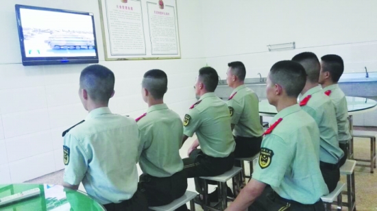 ▲ 7月30日,在“八一”建军节来临之际,武警吉首市中队组织官兵收看了建军90周年沙场阅兵。宏大的场景,振奋人心的话语使中队官兵倍加自豪,该中队官兵纷纷表示,要苦练军事技能,不断提高能力素质,争做“有灵魂,有本事,有血性,有品德”的新一代军人,为强军卫国贡献自己的力量。 本报记者 周 堃 通讯员 张 辉 摄