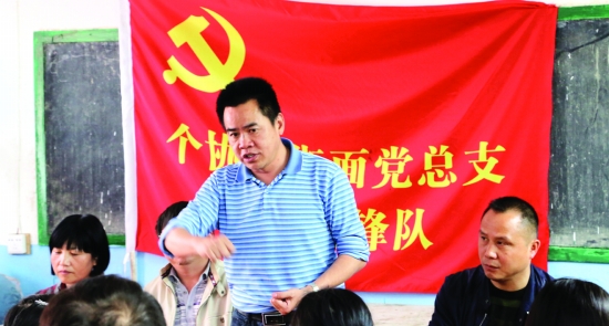 州工商联副主席,吉首市个私协会党委书记、会长,海圳集团董事长左建明在扶贫村上党课。