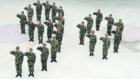 在“八一”建军节来临之际,武警吉首市中队“90后”战士,排成90字样,向建军90周年献礼。 本报记者 周 堃 通讯员 张 辉 摄