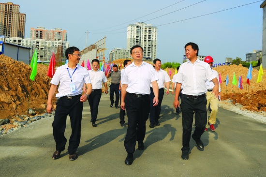 ▲州委常委、州委宣传部部长、龙山县委书记周云(前排中)考察体育中心建设情况。
