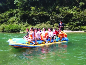 时下正值旅游高峰时期,前来猛洞河漂流的游客如织。永顺县今年成立文旅集团公司,通过整合旅游资源,统一规划,统一管理,文化旅游取得了阶段性成效。现在每天平均接待游客3000余人,峰值期4000人以上,预计全年接待游客达20万人次,经营收入达3000万元以上。