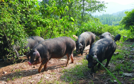 放养的湘西生态黑猪。