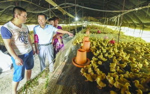 8月17日,武强县牧兴肉鸭养殖合作社的党员在鸭棚内现场为肉鸭养殖户进行技术指导。