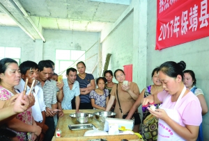 8月17日,济南市历城区中式面点高级技师在保靖县毛沟镇永和村为贫困劳动力传授花式面点制作技术。近年来,保靖县紧抓与济南市历城区劳务扶贫协作有利契机,加大贫困劳动力就业技能培训,每年聘请历城区3-5名高级技师进社区、进村寨,手把手为精准扶贫户、低保户等贫困劳动力进行为期7天以上的就业技能培训。