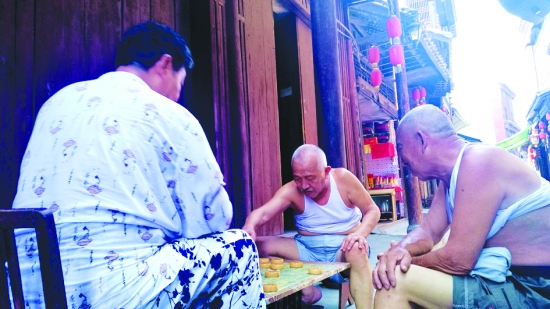 8月26日,在泸溪县浦市古镇古香古色的太平老街上,几位老人正悠闲地下着象棋,其乐融融。“卫生好了,路好走了,房屋也改造好了,一片一片的看起来也有个看头,。再加上那么多人都到这里来玩,人气也兴旺了不少。”说起古镇的变化,老街的居民也是打心眼里高兴。 近年来,随着浦市开发力度的加大,古镇的商贸古街、古宅建筑、古文化遗址、近代革命旧址等得到了