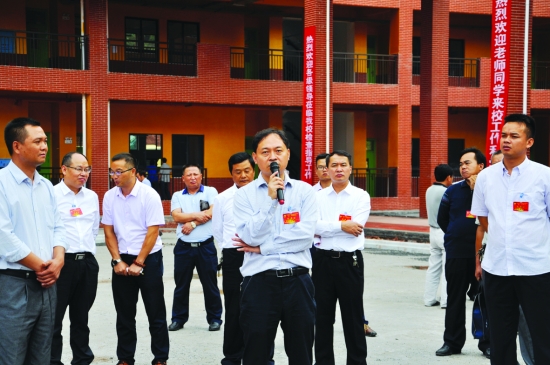 凤凰县党代会代表视察思源实验学校,县委书记颜长文(中)介绍凤凰教育大布局的思路。