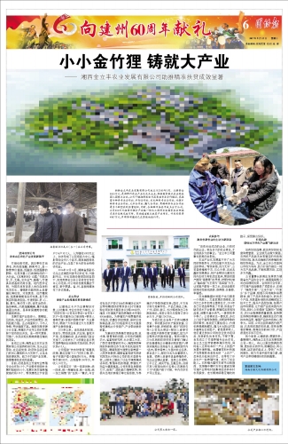 自成立以来,湘西金立丰农业发展有限公司坚持政府引导,龙头企业带动,在各级党委、政府和各级各部门的关心重视和大力支持下,立足本地资源优势,致力于竹狸产业发展,助推精准扶贫成效显著。