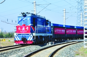 装载着2000吨哈萨克斯坦油脂的中亚班列“长安号”首趟回程班列,缓缓驶入西安铁路局新筑车站货场(2016年3月26日摄)。 大漠孤烟,黄沙漫道。千百年来,苍茫萧瑟的意象在边塞诗人的作品中代代相传。时至今日,再看中国西北角,土地还是那片土地,但随着改革开放的深入推进和科技进步,那里正不断发生可喜的变化。 新华社发(唐振江 摄)