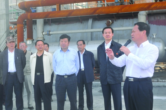 州委书记叶红专(右一)在轩华公司考察。
