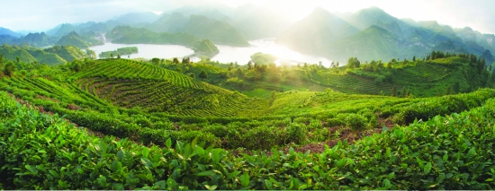 古丈县库区茶香满园栖凤湖。