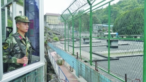9月12日,位于吉首市看守所内,武警吉首市中队士兵正在执勤。随着州庆临近,该中队加强固定目标执勤和外围巡视,确保不出现任何事故。 记者 周 堃 通讯员 张 辉 摄