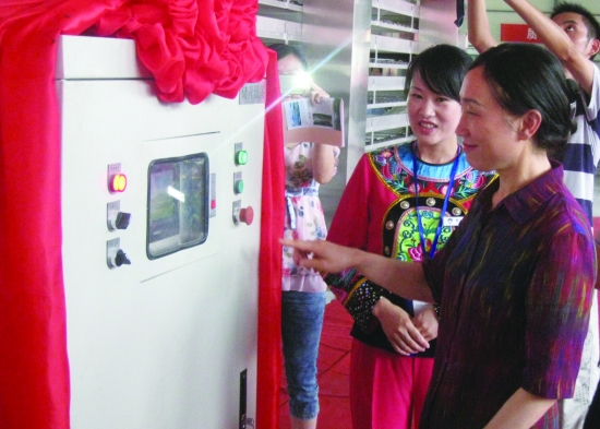 2011年7月,时任湖南省委常委、统战部部长李微微,为英妹子启动了国内最先进的红绿茶清洁化智能生产线。(资料图片)