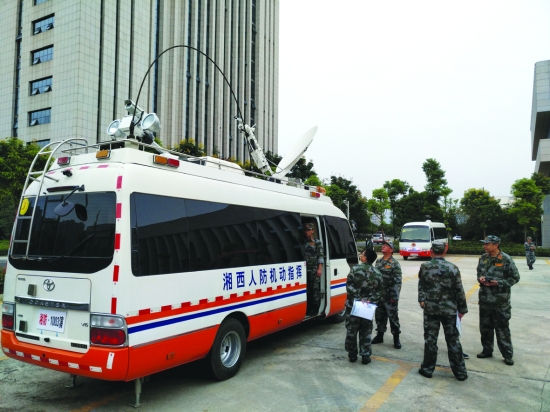 湘西人防指挥车参加训练现场。
