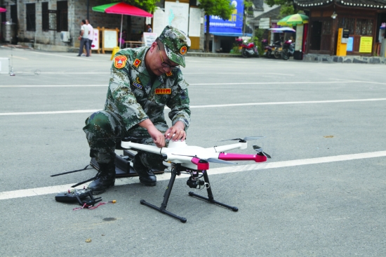 无人机操作人员正在调试起飞。