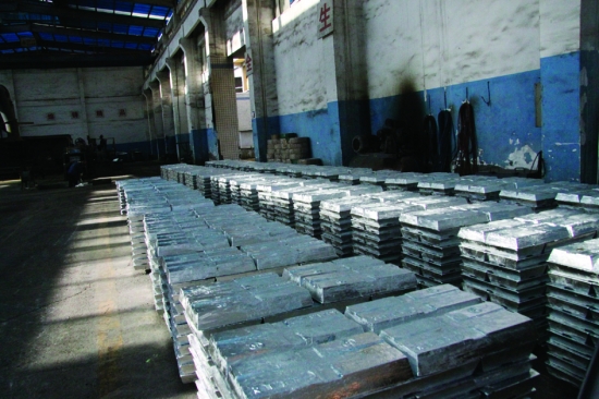 铸型车间制作锌锭成品。