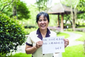 48岁的高晚玉,1999年从吉首乳品厂下岗后,在关厢门卖过鞋,在民营小区卖过衣服,2013年来到三鼎公司负责保洁工作。 “个体户太累,到处进货,天天守店,还顾不了家。”她一语道出感受,“如今每天按时上下班,能照顾老公和孩子,这工作比以前所有的工作都更让人安心。” 保洁员中,像高晚玉这样的下岗职工和附近农村妇女占了大多数。经过公司系统培训,都成长为熟练的物业保洁员,自食其力的同时,又能照顾家庭。 “州庆来了,城市越变越漂亮,干净卫生也很重要。”高晚玉笑着说,“我觉得我们的工作很有意义,也是在为州庆做贡献嘛。” |