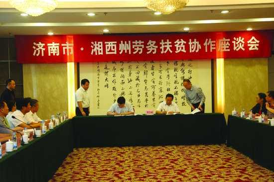 湘西州与济南市两地人社部门召开劳务扶贫协作座谈会,双方签署劳务扶贫协作协议。