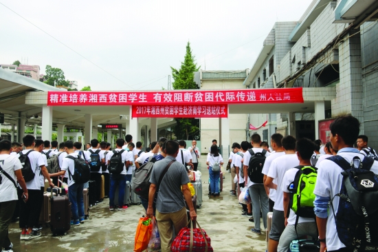 “技能筑梦、就业脱贫”,2017年湘西州贫困学生启程赴济南学习。