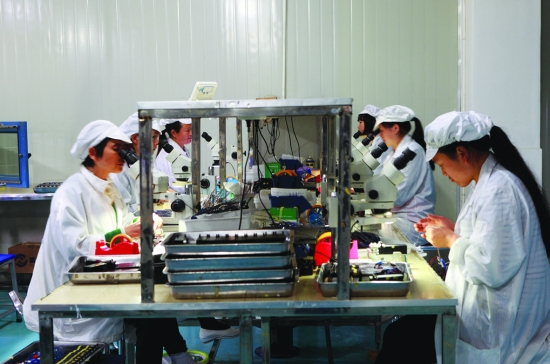 新中合光电科技公司的工人们正在聚精会神的工作中