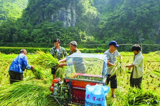 州委发出“万名干部下基层”的号召后,花垣县委高度重视,要求县直机关迅速行动起来,以实际行动迎接党的十九大召开和州庆60周年。图为9月16日,花垣县委党史研究室和县民爆公司的党员干部在驻点扶贫村补抽乡聚福村帮助贫困户收稻谷。 张明华 摄