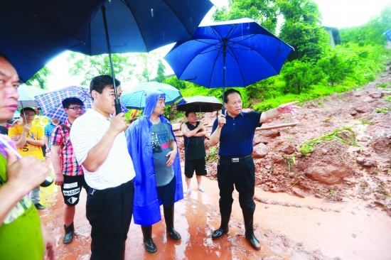 州委书记叶红专(右一)在G319滑坡现场指挥抢险。 彭 伟 摄
