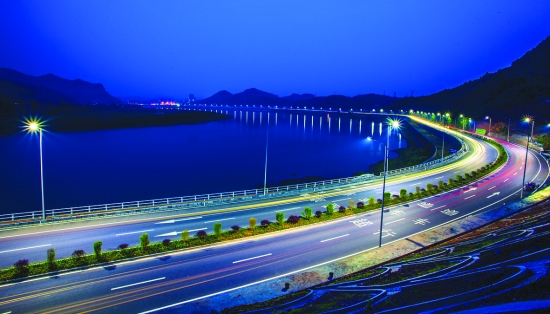 夜色中的六车道。
