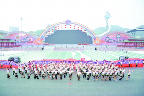 花垣县代表队在进行节目彩排。 刘 炜 摄