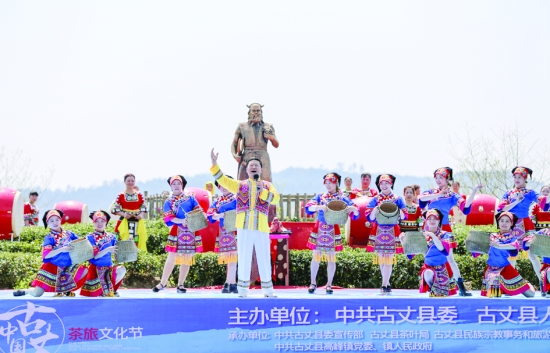 4月2日上午,国家级自然保护区———古丈县高望界的千米高山上鼓声阵阵、茶歌飞扬,2017首届中国·古丈茶旅文化节在茶香萦绕中拉开序幕。 石立新 刘 颜 摄