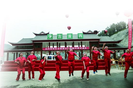 把青春和智慧献给你———在龙吉高速古吉段顺利通车之际,建设者们欢欣鼓舞。