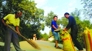 9月16日,在泸溪县浦市镇高山坪村,村民正忙着将晒干的稻谷打包归仓,收获金秋的喜悦。