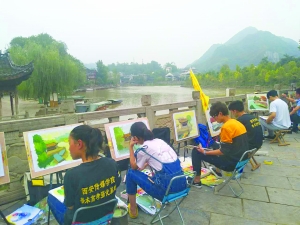 9月24日,西安传媒学院美术专业学生在花垣县边城镇创作水彩画。据了解,近年来,该县将非遗保护传承、开展民俗活动、创建美术基地结合起来,打造文化边城这一品牌,吸引着全国各地的美术院校学生和艺术家来这里创作。