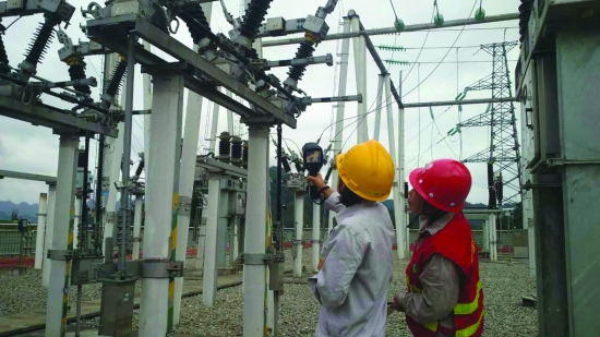 10月9日,随着“国庆”“中秋”双节长假的结束,国网永顺供电公司圆满完成双节的保电任务,实现了长假期间,电网运行稳定,城乡居民节日用电正常的目标。图为节日期间变电站特巡现场。 全进芬 摄