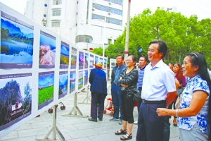日前,泸溪县城白沙街头,群众在观看由县政协主办的以喜迎十九大为主题的《盘瓠故园·画里泸溪100景》摄影展,摄影作品中的历史、人文和自然等多种景观充分反映了该县近年来在扶贫攻坚中所取得的辉煌成就。
