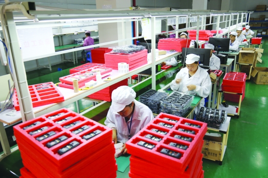 10月10日,湘西经开区入区某电子信息企业手机生产线车间内一片繁忙景象。今年以来,该区出台“助保贷”、用工、标准厂房租赁等系列优惠政策,积极支持区内企业发展,目前辖区30余家规模以上企业生产稳定。 本报特约记者 刘振军 张术杰 摄