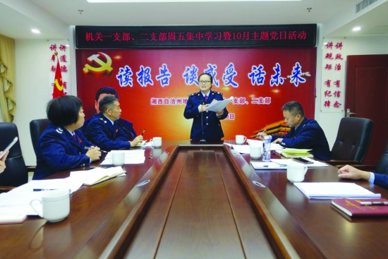 ▲10月20日上午,州地税局机关一支部、二支部开展了以“读报告、谈感受、话未来”为主题的党日活动。 据了解,为更好地学习党的十九大,州地税局在组织全体党员干部集中收看十九大每日日程的同时,还及时将十九大报告相关内容进行了整理,并号召各支部形式多样地组织集中学习,确保学习效果。 本报记者 周名猛 通讯员 田小林 摄