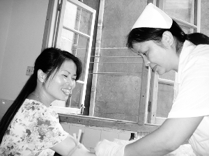 图为医生在为该校教师抽取血样。 黄益勇 摄