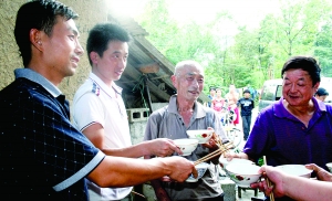 文/图 本报通讯员 易长松 立秋后将近半月的8月20日,在龙山县的大灵山下,家住乌鸦乡西堰村的农村土家族老党员戴昌金,迎来了他76岁的生日。他的晚辈们以及附近的乡亲们,大大小小,一共40多个,纷纷从四面八方赶来,为这位德高望重的长辈开了一个别具特色的山村生日派对,为这位受人尊敬的长辈和农村土家族老党员祝寿。 戴昌金是位身体健康、精神矍烁的老人,他有着不同凡响的人生经历。1950年,在他17岁的时候,就跟随解放军参加剿匪战斗,多次与土匪进行顽强的斗争;至今,他身上留有多处被土匪打伤、烙伤的印痕。 更加传奇的是,戴昌金19岁时,他与父亲一道,使用简单的工具,一起打死了多次来村寨中糟蹋庄稼、威胁乡亲生命的豹子,为民除了害。1958年,戴昌金25岁时,光荣地加入了中国共产党,成为当地为数不多的农村党员;此后,他又长期担任生产队长。由于办事公道,深受乡亲们的爱戴;同时,他也成了他那个大家庭中的主心骨。 “那只豹子尾巴差不多有一米长。”戴昌金今生日这天,在晚辈们的一再追问下,他兴奋地比划着,介绍当年与豹子搏斗的情形。 |