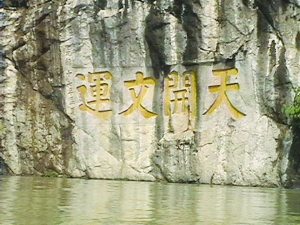 宋 涛 邀外地朋友游酉水,观山望水,兴致很浓。 伫立保靖码头,遥望河对岸悬崖峭壁上四颗浑雄苍劲的颜体大字———“天开文运”,久久地凝视,久久不能平静。 外地朋友突然惊叹曰:“好一幅画中书法。”一座青山,翠绿碧黛,半山腰绿树掩映的一处檐阁飞悬的庙宇,古朴典雅。古庙旁有一面浑厚宽大高耸云天的悬崖绝壁,镌刻着四颗颜体大字“天开文运”,真是巧夺天工,绝壁生奇。山脚下一条滔滔奔流的酉水,映着青山,映着庙宇,映着古字,十分自然地融于一体,相映交辉,好一幅清秀亮丽的山水画。 家乡许多人都说:“天开文运”是保靖的标志,是酉水文化的符号。当您望着那四个苍劲有力的颜体大字在凝神遐思时,就会慢慢体味出它竟有着郁浓厚蕴的文化内涵。你会发现它不仅是四个字,竟是一部书,是酉水文化这部大辞典的书名。它刻印在美丽天堂坡半山腰里,俗人看它,只是四字;有心思的人想它,用遐思去阅读,顿会感到它富有无限惊人的内容。 许多时候,我伫立在酉水河畔,望着“天开文运”四字出神。在那几百丈高的悬崖飞壁上,只有飞鸟在那悬崖半壁中闪翅,人怎么能在悬崖峭壁上挥笔运刻呢?我曾有过许多遐想,是人在峭壁顶端吊绳而作?但至今没听说考古学家发现顶端有吊绳桩脚的痕迹。难道是远古洪荒滔天,大水上漫,人乘舟楫而固定石壁的神话?除此之外,只能像仙人一样飘临绝壁了。凡夫俗子,谁能想象出远古人类在这样悬崖飞壁上挥墨刻字,创造出这般文化奇迹,虚无飘渺,仅可遐思而也。但“天开文运”四个颜体大字的真迹,又实实在在嵌刻在绝壁悬崖上,难道真有什么神力让人不可思议?酉水沿岸悬崖上许多建筑群奇观,倒让我霎然感悟,这绝壁绝字的存在并不是孤立的。它周围有狮洞椎歌狮子庵悬崖古庙;河对岸笔架山上,有依山而建,靠崖相立的烟霞寺,这些古老的建筑群,都是临水飞悬,阁楼悬挂飞壁的特奇建筑。古人即可在悬崖峭壁上修出如此壮观奇异的飞檐悬阁,那么在峭壁上挥墨镌刻,也就不是什么不可为之的事了。我们虽然谈不出它的运作方式,但可以遐想出古人那高超奇妙的建筑工艺,早已在酉水流域广泛地流传。这幅镌刻于峭壁上的古字真迹,那悬挂峭壁上的悬楼檐阁,正好印证了古代建筑工艺在酉水流域达到了超乎常人想象的绝高水平,而“天开文运”四字正是古老建筑工艺文化在酉水河上飘流的一个亮点,成为湘西摩崖镌石之最。 聪明的现代人可创造出神奇的吊车、悬梯之类的先进机械,可把高耸入云的火箭发射塔稳稳竖起,而古人的绝壁施工,难道比当今的先进技术会逊色吗?“天开文运”建筑雕刻工艺,并不是什么“海市蜃楼”,而是古代湘西劳动人民聪慧与才智的体现,是古老悠久的酉水文化在酉水流域存在的一个缩影。 “天开文运”即然是一部书,它所折射的内涵,让人遐思不尽。望着那浑雄苍劲、雍容大方、笔力充沛饱满、笔法精运娴熟的颜体大字,不由得让人想到它书法上的成就。颜体是历代书法界最称颂的楷体。唐人颜真卿的书法艺术,对后人影响深远,千年盛行不衰。而镌刻于酉水河畔的这幅“天开文运” 颜体大字,我不敢说它是颜真卿的真迹书法,但它的一笔一划,笔笔透力,点点精运,确实凸显了颜真卿书法艺术的真迹特征。从它起笔、运笔、收笔的笔技来看,是那样的潇洒自如,骨力丰满,笔锋运气,轻重徐疾,提按有度。四字中的头语“天开”二字,横笔垂竖,粗细相宜;垂直厚重,笔力饱满。那“开”字折笔搭配,门框均匀;四角平稳,内含开阔,写出了这两个难写而又出神的字。“文运“二字,起点更是凌空取势,厚点成圆,左撇右捺,轻重舒展;走字垫底,折锋精巧,捺脚肥厚,清秀劲朗。它的横笔竖划,点运折笔,真正体现了颜氏书法特征的精髓。尽管它不是颜真卿的真迹,或是其他什么人书写,但“天开文运”的运笔走势,达到了颜氏书法的较高水平。也就是说,在远古的酉水流域,中国书法艺术已在这块神密的土地上广泛地传播和承传。书法艺术的乳汁,早就滋润了湘西这块文化厚重的土壤。酉水沿岸许多古庙里的精美楹联书法,数不胜举,耐人品味,欲醉无厌。猛洞河不二门风景区那幅清人景元一笔套写的“山青海岸”神笔,就是一幅精妙的绝世惊作。 古老的书法艺术,相继传承而不衰。湘西涌现出许多如林时九那样的书法名家。保靖青年书法家滕树耀也是其代表之一。滕的书法墨迹遍布酉水沿岸。他的书法作品放到京城与书法大师们的作品同展,也难分伯仲。一幅“天开文运”的书法作品,引出了酉水书法文化的许多议论。“天开文运”的书法成就,即是古人的骄傲,也是现代人的骄傲;是酉水文化书法艺术的骄傲,也是中国书法艺术在酉水存在的最闪亮的结晶。 “天开文运”是一部书,它所蕴含的文化内容,更是刻意深远。“天开文运”这句古人的惊世绝句,精辟而凝重,韵味深远而褒扬,一句含万物。即揭示了酉水文化的远古存在,源流远长;又启迪了当今文化的传承和发展。古代什么人说出这句极富哲理的话,无从考查。但它点缀了酉水文化最本质的内涵:天开启文运,酉水文化的渊源即启自盘古开天之时,应运而生,繁衍生文。酉水文化远古而悠久,厚重而丰盈,运达而灿烂。它是酉水沿岸少数民族的灵魂,它与黄河文化、长江文化一样古老而辉煌。 黄河文化孕育了中华文化的千年文明,长江文化波澜了华夏历史的经