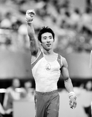 9月18日,北京队选手滕海滨庆祝夺冠。当日,在山东济南进行的第十一届全国运动会体操男子个人全能决赛中,滕海滨以89.350分的成绩获得冠军。