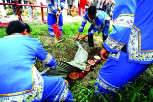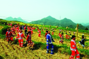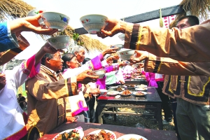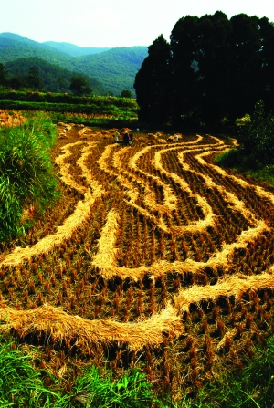 本报特约记者 覃遵奎 通讯员 彭善有 唐其柏 马继祥 9月24日,秋高气爽,阳光灿烂,在永顺县高坪乡牛郎寨,隆重举行了土家族“晒龙谷”活动,喜庆丰收,喜迎建国60周年。 金黄的稻穗,弯弯曲曲地摆放在成片的梯田上,蜿蜒而去,相连成龙,相邻村寨数百名土家农民,在黄龙盘绕的梯田里,人们唱起山歌,跳着摆手舞,表演着土家先民刀耕火种、狩猎捕鱼劳作的画面,展示着土家人在梯田上庆丰收的火样激情。 “晒龙谷”是土家族的习俗之一,它源于土家族大型祭祀祖先活动———“舍巴日”(即摆手活动)。每年农历正月初三,土家人都要举行“舍巴日”,摆手又有大小之分,大摆手历时半月,主要祭奉八部大神;小摆手则3至5天,主要祭奉彭公爵主,以摆手舞和摆手歌为主要表现形式,其主要内容有人类起源、民族迁徒、农事活动、休闲娱乐等,在舍巴日的第六场里,春播秋收就有开秧门、晒龙谷的农事表演。 “晒龙谷”也源于土家人的农事劳作活动,每到收获季节,他们先将田里的禾稻割下,扎成小把,在田里用“万字格”的形式,摆成一条蜿蜒的长龙,让太阳晒上数日,十里田园连成一线,似金龙条条,然后再择日统一扮禾,颗粒归仓。同时,土家人在这个活动中,在梯玛的带领下,祭祀祖先,敬拜谷神。 土家人居住多为山区,稻谷成熟期长,而且先后不一,通过在田里曝晒,加速了稻谷的成熟一致,达到颗粒归仓的理想效果。世代相传,就演绎成土家人的奇特习俗“晒龙谷”。 “晒龙谷”主要流传在湘西州的永顺及周边的土家族聚居区,每年中秋节前择定吉日,十里八乡,相聚开宴。土家“晒龙谷”活动的主要内容有踏青观龙、祝福祭天、摆手祭龙、“把酒开宴”四项。村村寨寨的男女老少汇集田头,观赏田里龙谷,品评龙谷花案,显摆自己的丰硕成果。 在欢快的音乐声中,土家姑娘们用系满五谷杂粮的草绳拦住大门,“老嘎唛”(当地德高望重的长者)主持丰收拦门仪式。老嘎唛唱起了拦门歌:“东边一朵祥云起,西边一朵紫云开,祥云起,紫云开,五谷神灵乘祥来,五谷丰登人兴旺,喜迎宾朋八方来。”接着,“老嘎唛”向客人敬酒:“今天是我们土家族传统的‘晒龙谷’,就是喜获丰收的节日,是我们喜迎建国60周年的好日子,按照我们土家人的习俗,我要给大家敬酒三杯。国正天心顺,我们土家人欣逢盛世,迎来了风调雨顺的好年景,我们大家一起来,‘热服’(喝酒)!” 摄影:陈庭茂 张 谨 杨少东 卢瑞生 |