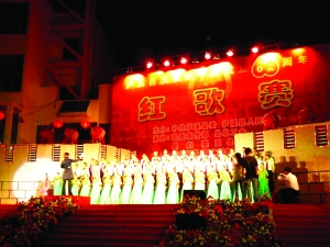 9月25日晚,泸溪县在白沙镇盘瓠广场举办庆祝建国60周年华诞红色经典歌曲演唱比赛。活动中,来自全县11个战线的代表队各展其能,演唱了人们耳熟能详的《没有共产党就没有新中国》、《歌唱祖国》、《爱我中华》、《保卫黄河》等曲目。晚会现场充满了热烈、欢乐、喜庆、祥和的气氛,充分展示了泸溪各族儿女对党、对祖国的美好祝福和对生活的无限热爱。
