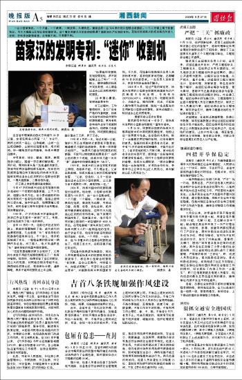 苗家汉的发明专利:“迷你”收割机