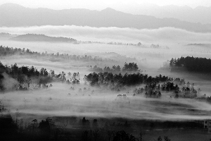 入冬来,受低温天气的影响,花垣县形成了大雾天气,雾带缠绕着百里苗乡的山山水水,形成了雾绕苗乡的神奇景观。图为该县道二乡12月9日壮观的雾景。 石林荣 摄