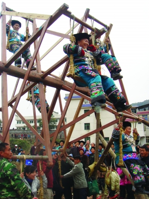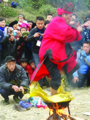 图/文 本报记者 向培东 龙清彰 离传统的春节还有一个多月,这里的苗寨就热闹开了,12月18日,一场原汁原味的“苗年”,“醉倒”了保靖县葫芦镇的苗族人民。 苗年是苗族依照苗历法而设定的民族传统年节,是苗族人民加深对本民族传统文化的认知、增进情感交融、酿造爱情的重要平台。苗历年月日时按十二生肖周而复始的循环,按照苗历计算,12月18日便是苗年,而当月即是苗历兔年鼠月。2011年葫芦镇苗年会由保靖县葫芦镇政府主办。 这是一个好日子,苗族同胞遇到好日子的时候,就把苗鼓打起来了,“隆隆隆”、“恰恰恰”,抑扬顿挫的鼓声像长了翅膀的鸟,欢快地在莽莽苍苍的吕洞群山飞来飞去,它唤醒了满山的树,激活了冬日的暖光,连地上孤寂的落叶,也似乎被这时而雄浑、时而轻灵的鼓声敲醒了,跟随风儿空中舞。 醉了,醉了,白脸细眉的苗族姑娘用纤纤小手端来的拦门酒,怎能让人不醉呢?醉的是客人的身子,可暖的是大伙儿的心窝子。远方的客人来过苗家人的年,怎能不让敦厚朴实的苗家人掏心窝子呢? 醉与不醉,似醉非醉,都不打紧,接下来苗家汉子的绝技表演,比什么醒酒药都好,也比什么酒都烈。锅底的柴火在噼啪作响,扔进油锅的石头溅出的是火星子,那天天在大山中与泥土相贴的大脚,就这样踩进滚烫的油锅,那大半生与庄稼相伴的大手,还残留稻谷的清香,就这样伸进滚烫的油锅捞出巴掌大的鹅卵石。 客人吃惊的摸着苗家汉子的这双手脚,汉子充满骄傲地笑了,其实这没什么特别,苗家人都有这样的好手脚,特别之处在哪里呢?是这个没有文字的民族,在漫长的历史长河里,留存下来的诚信,勤劳,勇敢,永不言弃的民族精神,庇佑着一代又一代的苗族人民,走过严寒的冬季,迎来明媚的春天。 |
