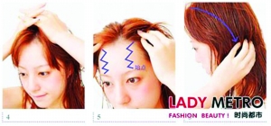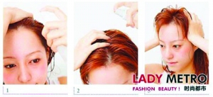 头部有很多穴位,像百会、脑户、玉枕等,针灸这些穴位,能够防治许多疾病,按摩这些穴位,能够通经活络,起到防止神经衰弱、头痛、失眠、健忘的作用。每日按摩头皮,同时还能够滋养秀发。 step 1:选用专业具有头皮按摩作用的精华液或是具有滋养秀发作用的精华液喷洒在靠近发根的部位。 step 2:为了使头皮按摩更加容易进行,在头顶部位和靠近耳际的部位多喷一些精华液。 step 3:用两手的手掌轻轻按摩头部两侧,让精华液能够充分渗透入头皮。 step 4:两手交叉与头顶,用手掌的力量轻压头顶,这样的动作坚持3秒,然后两手放开。重复按摩5次左右。 step 5:用两手手指的指腹从眉峰的部位开始以画z字的方式进行按摩。 step 6:侧头部的地方用手指从上至下轻轻按摩,重复3次左右。 (白雪) |