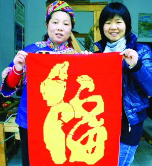 12月15日,“中国优秀织锦工艺传承人”、龙山县土家族科技特派员黎成凤,在龙山县城与县科技特派员办公室的工作人员一道,高兴地展示一幅刚刚完成、以“福”为主题的土家织锦作品,表达对即将到来的新年的美好祝福。