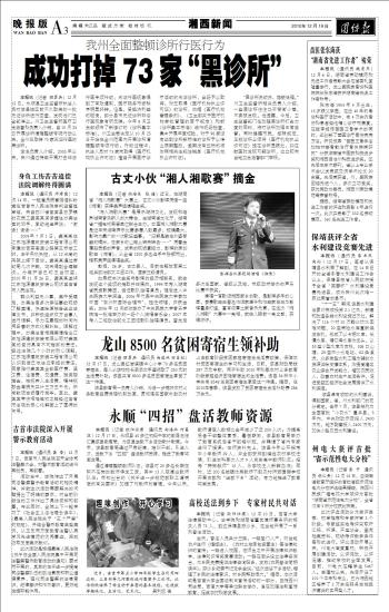 本报讯(记者 彭 宁 通讯员 胡仁贵)12月15日,由湖南省教育厅组织的首批省级示范性电大分校评选结果揭晓,湘西州民族广播电视大学被评为首批“湖南省示范性电大分校”,全省仅有5所分校获此殊荣。 此次评选活动分为自评自荐、初审推荐和专家评审3个阶段。专家组实地考评采取听汇报、听课、开座谈会、查阅档案资料、现场考评教学条件等形式进行。评比活动开展以来,州电大高度重视,积极开展创建活动,以评促改,以评促建,推动学校的全面发展。目前,州电大在籍学生5467人。自建校以来,先后开设了101个本专科专业,已为湘西地区培养了3万余名服务当地经济建设的实用型人才。 |